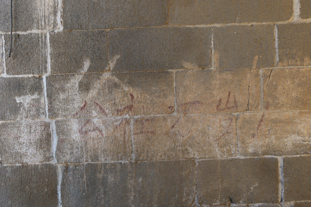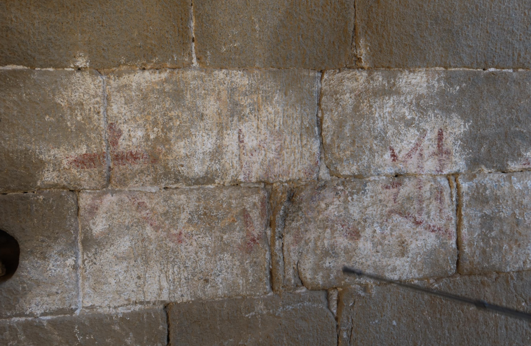 虽然已经用白腻子遮盖了,依然清晰可辨。