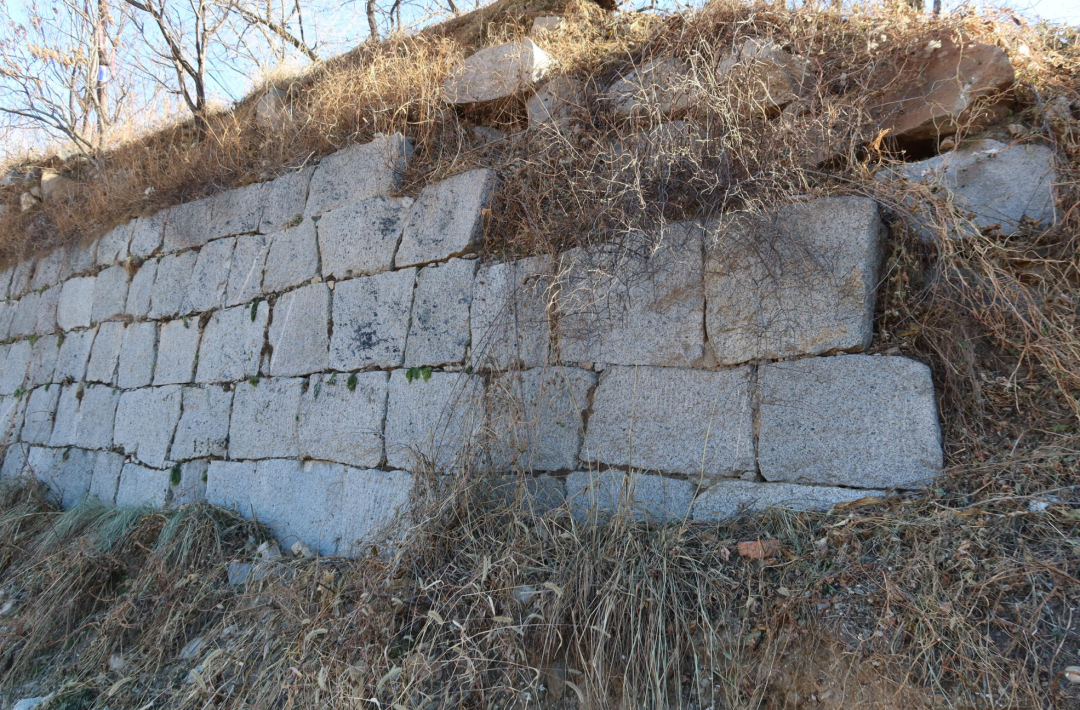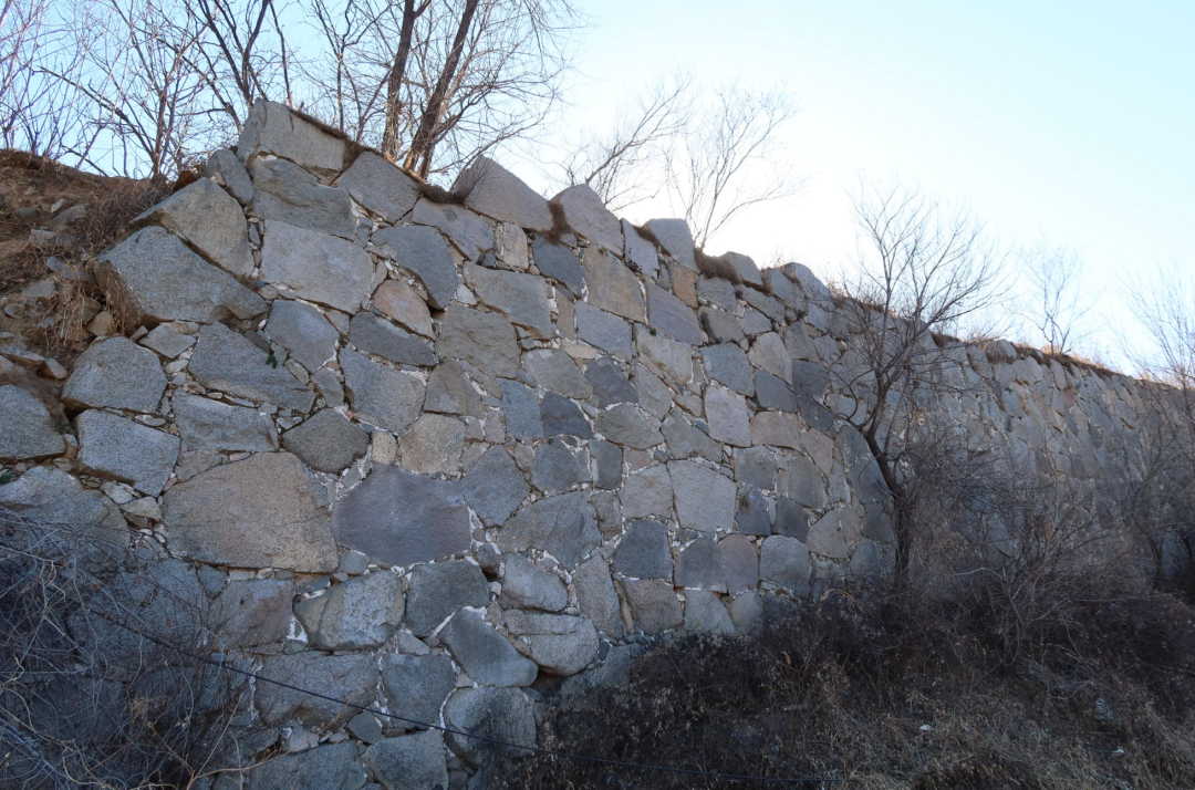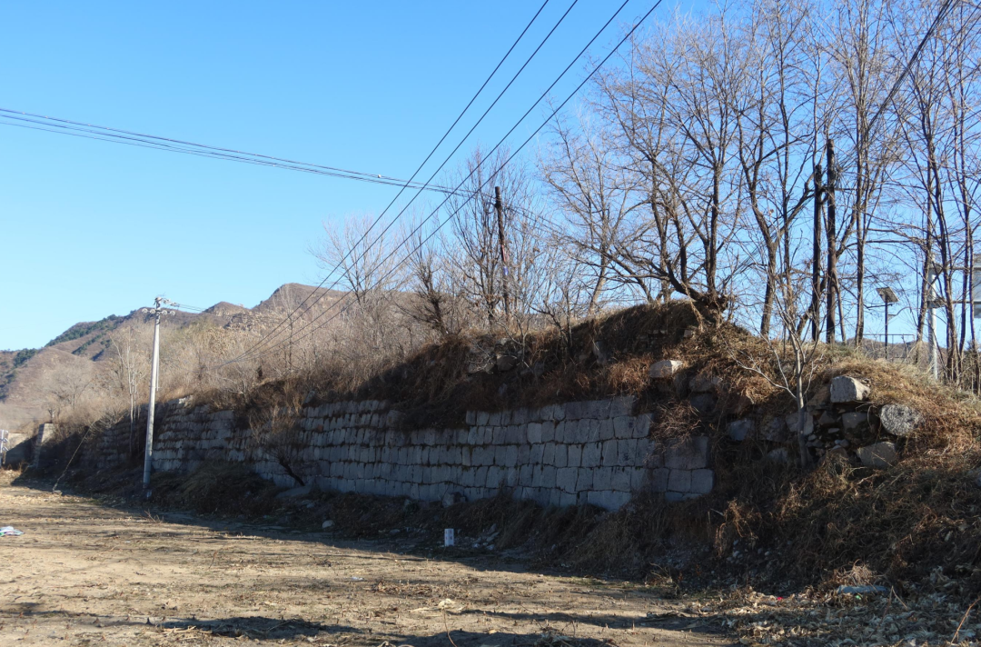 最外围的长城,沿河而建,城墙特色是石头修建,山顶多是碎石,河堤位置多是青石,镇政府那一段则是条石。