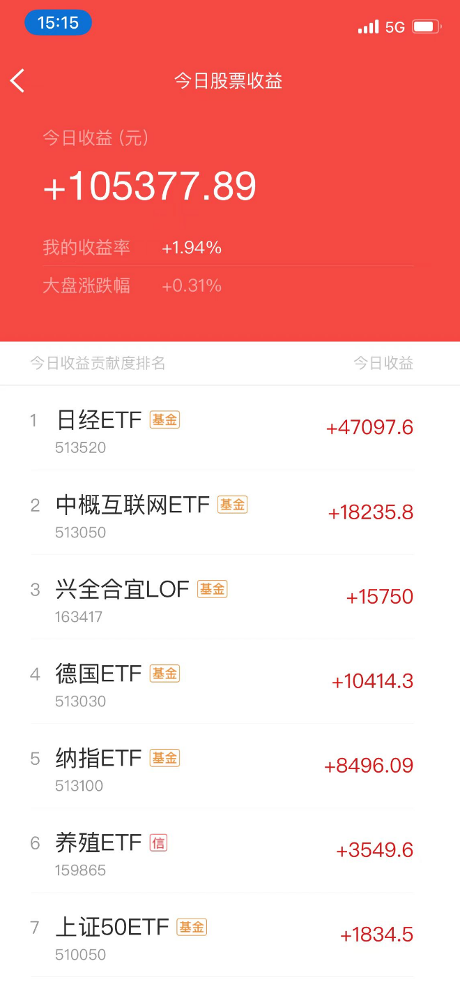 证券公司的客户经理给我打电话,跟我说日经ETF有些变态,溢价10%了,建议我先出来,等溢价回落的时候再买回,等于先把这7万落袋为安。